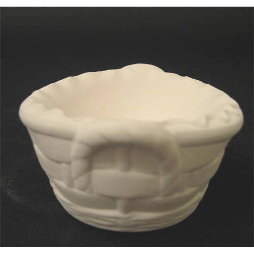 Réf. N°079 panier, coquetier / bougeoir, L 7,4 x l 7 x h 3,8 ; biscuit de faïence fine (céramique brute à peindre ou à émailler)