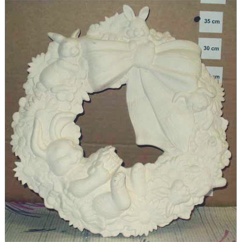 Réf. 05-047 lapins, couronne murale, diam. 40 x l 5 ; biscuit de faïence fine (céramique brute à peindre ou à émailler)