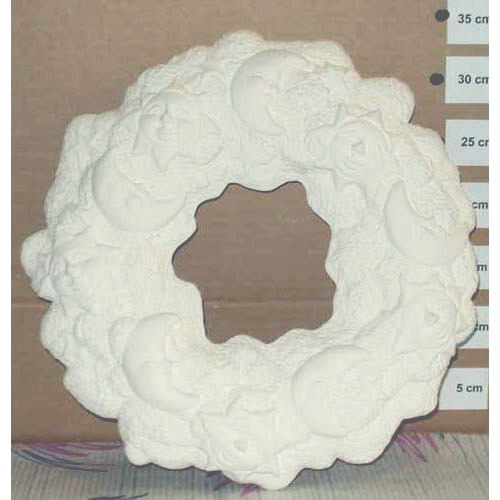 Réf. 13-091 lunes et soleils, couronne murale, diam. 35 x l 5 ; biscuit de faïence fine (céramique brute à peindre ou à émailler)