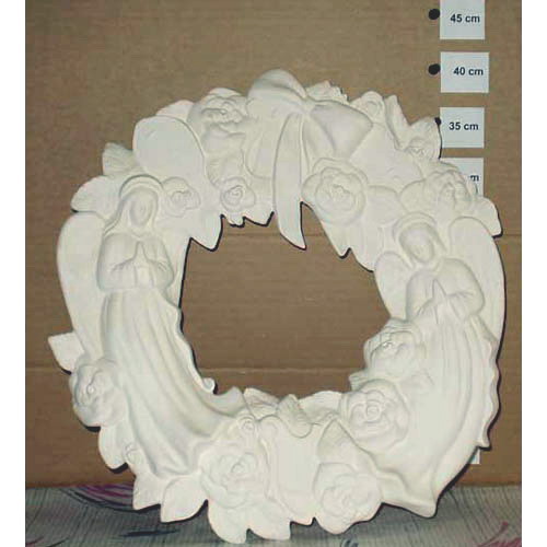 Réf. 14-052 grands anges, couronne murale, diam. 40 x l 7 ; biscuit de faïence fine (céramique brute à peindre ou à émailler)