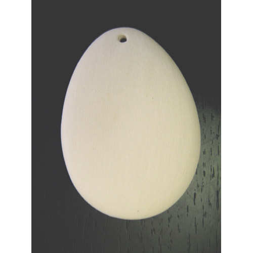 Réf. 09-082 oeuf, figurine plate / pendentif, L 4 x l 0,3 x h 5,5 ; biscuit de faïence fine (céramique brute à peindre ou à émailler)