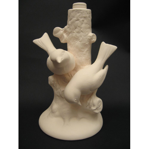 Réf. 10-024 arbre avec oiseaux, pied de lampe, L 15 x l 11,7 x h 21 09-100 ; biscuit de faïence fine (céramique brute à peindre ou à émailler)