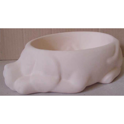 Réf. 13-130 gamelle de chien, figurine / écuelle, h 8 ; biscuit de faïence fine (céramique brute à peindre ou à émailler)