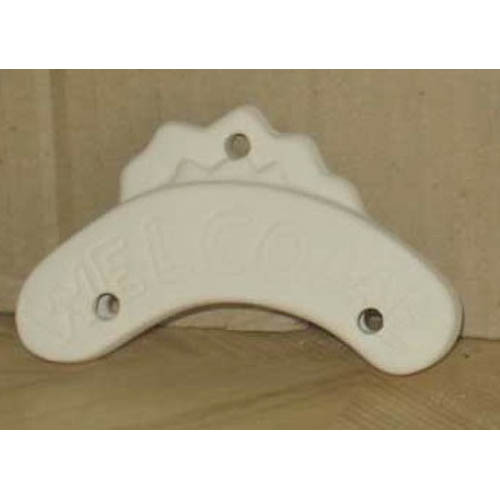13-143-2 welcome, plaquette pour porte, h 6 ; biscuit de faïence fine (céramique brute à peindre ou à émailler)