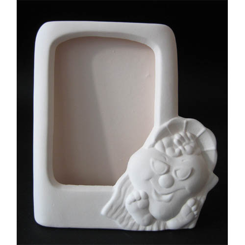Réf. N°168-5 coeur fille, porte-photo / porte-nom, L 7 x l 4 x h 7 ; biscuit de faïence fine (céramique brute à peindre ou à émailler)