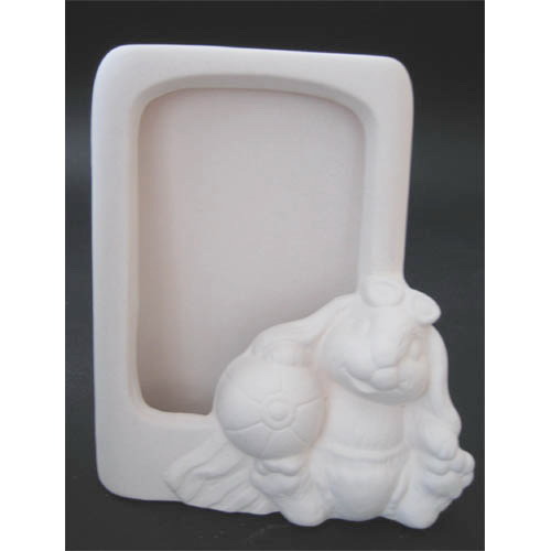 Réf. N°100 lapin, cadre, L 13 x l 3 x h 15 ; biscuit de faïence fine (céramique brute à peindre ou à émailler)