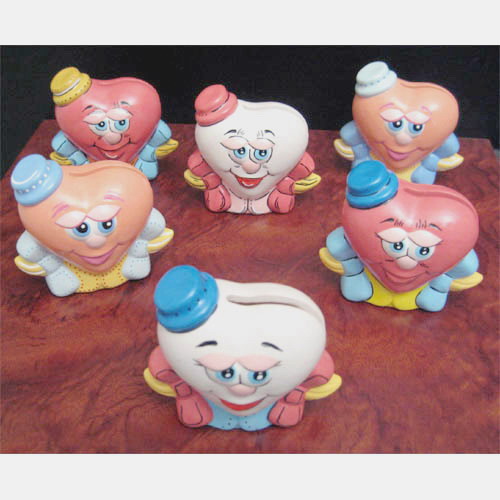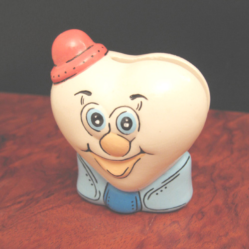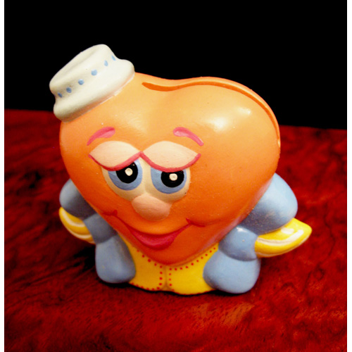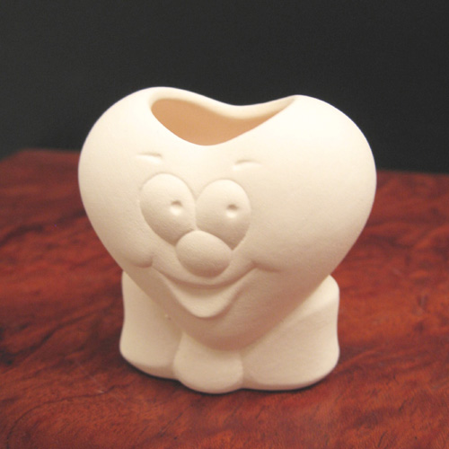 Réf. N°168-3 coeur garçon, porte-rouleau / ballotin, L 5,5 x l 3,5 x h 6,5 ; biscuit de faïence fine (céramique brute à peindre ou à émailler)