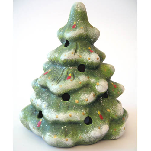 Réf. 01-043b sapin, figurine / photophore peint, diam. 9 x h 11