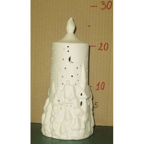 Réf. 01-150 bougie décorée de ville, photophore, h 27