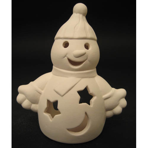 Réf. N°200 bonhomme de neige, figurine / photophore PM, L 9,5 x l 6 x h 11 ; biscuit de faïence fine (céramique brute à peindre ou à émailler)