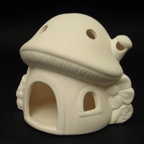Réf. N°098 champignon, figurine / photophore, L 12,5 x l 10 x h 10 ; biscuit de faïence fine (céramique brute à peindre ou à émailler)