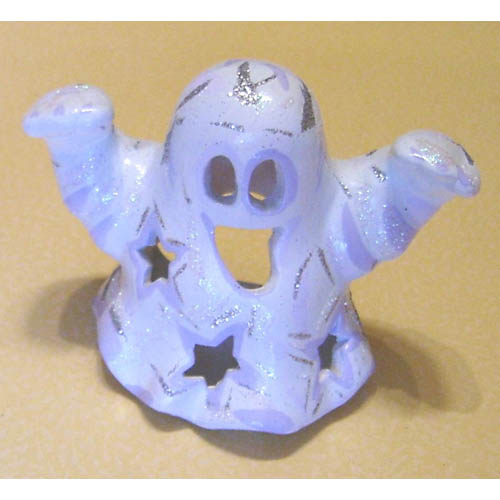 Réf. N°114 fantôme, photophore, L 13,5 x l 9 x h 11 ; biscuit de faïence fine (céramique brute à peindre ou à émailler)