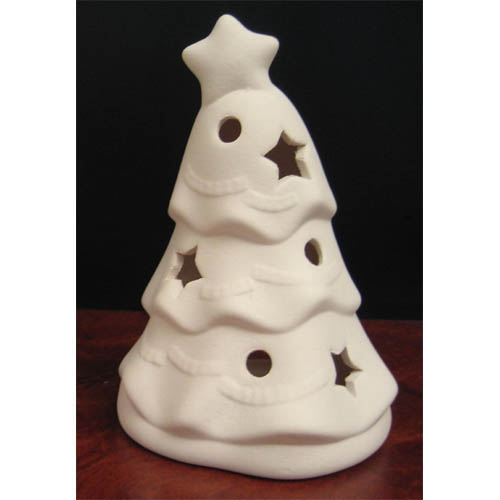 Réf. N°118 sapin, figurine / photophore, L 9 x l 9 x h 13 ; biscuit de faïence fine (céramique brute à peindre ou à émailler)