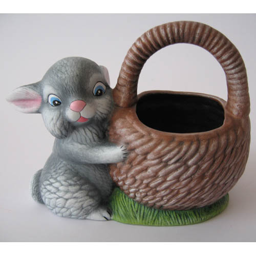 Réf. 05-007b-2 lapin avec corbeille, bonbonnière / porte-crayon peint/ cache-pot, L 18,5 x l 11 x h 14,5