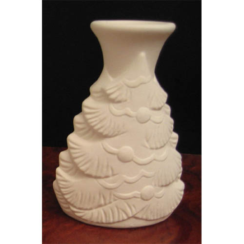 N°131 sapin, vase à fleurs séchées / bougeoir / porte-crayons, L 7 x l 4,5 x h 10 ; biscuit de faïence fine (céramique brute à peindre ou à émailler)