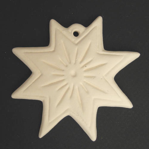 Réf. 01-144 étoile de Noël, figurine, dos plat, L 7 x l 7 x h 0,5 ; biscuit de faïence fine (céramique brute à peindre ou à émailler)