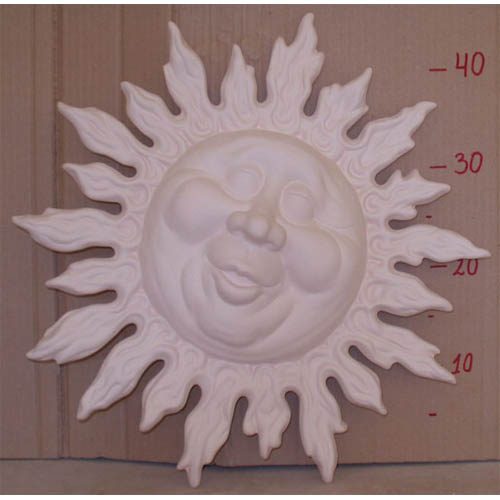 Réf. 02-017 soleil de troll, sculpture murale, diam. 45 x l 6,5 ; biscuit de faïence fine (céramique brute à peindre ou à émailler)