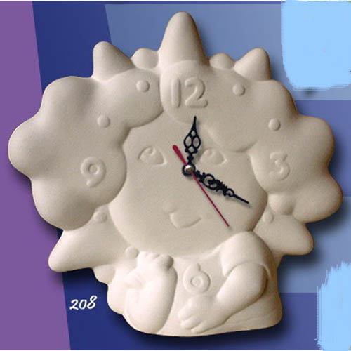 Réf. N°208aig Soleil, cadran de pendule avec aiguilles, L 20 x l 6,5 x h 19 ; biscuit de faïence fine (céramique brute à peindre ou à émailler)