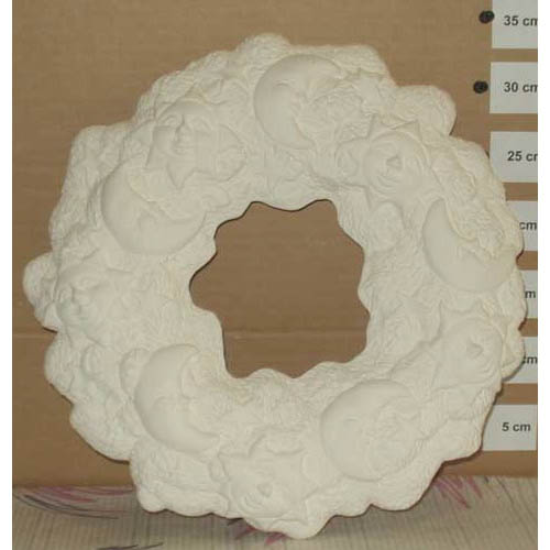 Réf. 13-091 Lunes et Soleils, couronne murale, diam. 35 x l 5 ; biscuit de faïence fine (céramique brute à peindre ou à émailler)