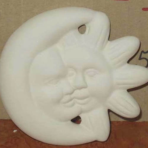 Réf. 13-143-1 Soleil et Lune, sculpture murale, h 12 ; biscuit de faïence fine (céramique brute à peindre ou à émailler)