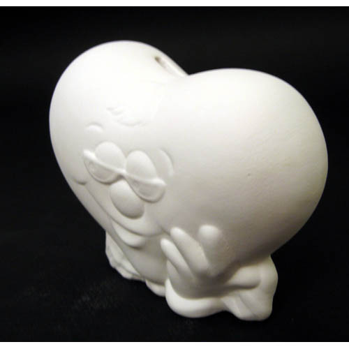 Réf. N°019-2 coeur, tirelire sans bouchon, L 13 x l 7 x h 11 ; biscuit de faïence fine (céramique brute à peindre ou à émailler)