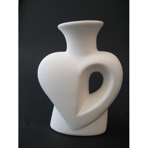 Réf. N°171 coeur, vase à fleurs séchées / bougeoir, L 8 x l 4 x h 10 ; biscuit de faïence fine (céramique brute à peindre ou à émailler)