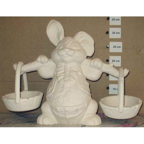 Réf. 05-005 lapin avec corbeilles, groupe de trois figurines, L 45 x l 25 x h 34 ; biscuit de faïence fine (céramique brute à peindre ou à émailler)