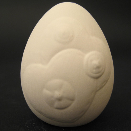 Réf. 09-013-2 oeuf avec deux coeurs, figurine, diam. 5 x h 6 ; biscuit de faïence fine (céramique brute à peindre ou à émailler)