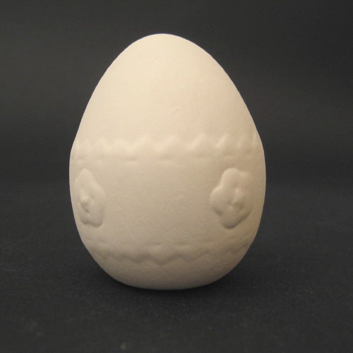 Réf. 09-013-4 oeuf avec petites fleurs, figurine, diam. 5 x h 6 ; biscuit de faïence fine (céramique brute à peindre ou à émailler)