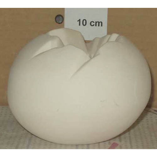 Réf. 09-019 oeuf ouvert, figurine, L 13 x h 9 ; biscuit de faïence fine (céramique brute à peindre ou à émailler)
