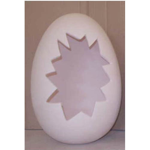 Réf. 09-020-1 oeuf ouvert craqué, figurine, diam. 24 x h 36 ; biscuit de faïence fine (céramique brute à peindre ou à émailler)
