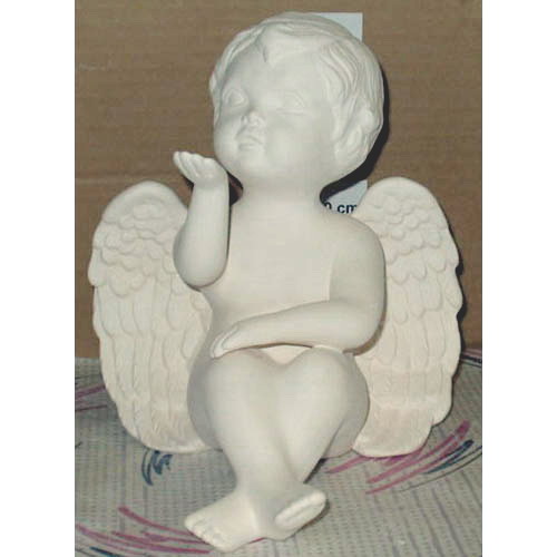 Réf. 14-004-2 ange envoyant un baiser, figurine, h 28 ; biscuit de faïence fine (céramique brute à peindre ou à émailler)