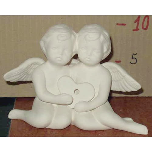 Réf. 14-063 anges avec coeur, figurine, h 10 ; biscuit de faïence fine (céramique brute à peindre ou à émailler)