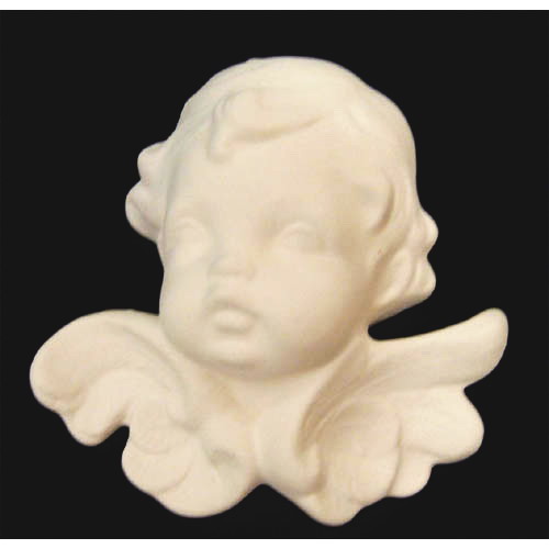 Réf. 14-081-2 mini tête d'ange, figurine, dos plat, L 6,5 x l 3,5 x h 6,5 ; biscuit de faïence fine (céramique brute à peindre ou à émailler)