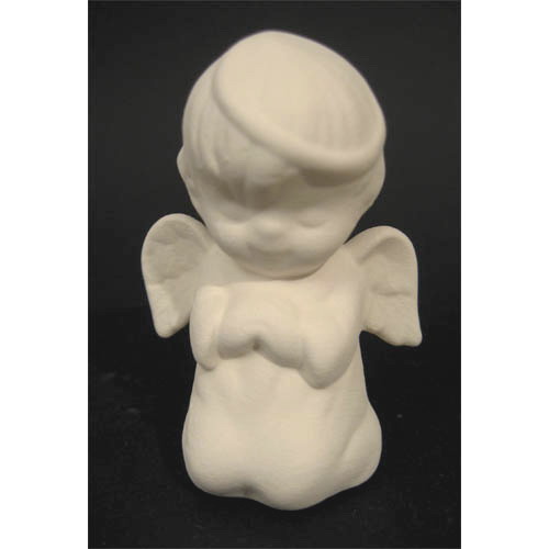 Réf. 14-027-2 ange priant, figurine, L 4 x l 4 x h 7,7 ; biscuit de faïence fine (céramique brute à peindre ou à émailler)