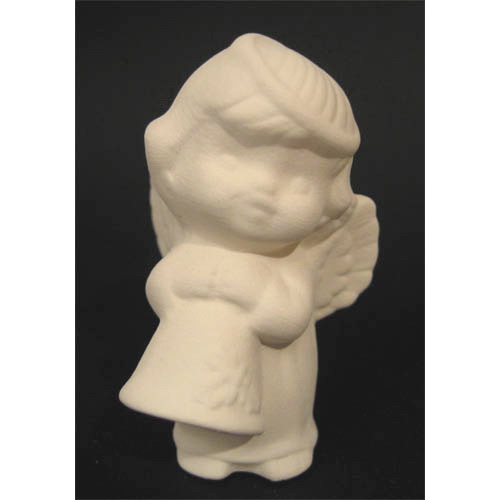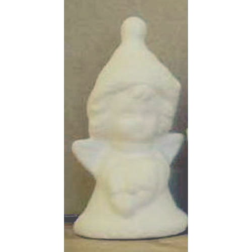 Réf. 14-024-3 petit ange avec clochette, figurine, L 3,5 x l 3 x h 5,8 ; biscuit de faïence fine (céramique brute à peindre ou à émailler)