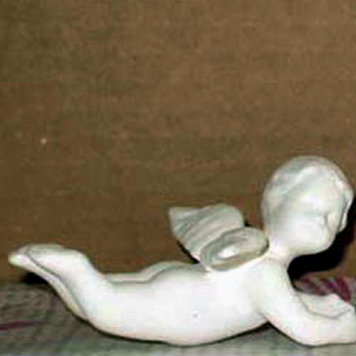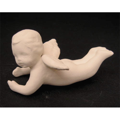 Réf. 14-030-1 ange dormant, figurine, L 9 x l 4 x h 4,5 ; biscuit de faïence fine (céramique brute à peindre ou à émailler)