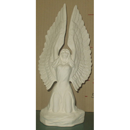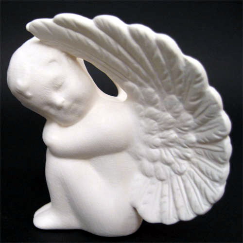 Réf. 14-080-2 ange avec grandes ailes, figurine, L 7 x l 7 x h 9 ; biscuit de faïence fine (céramique brute à peindre ou à émailler)
