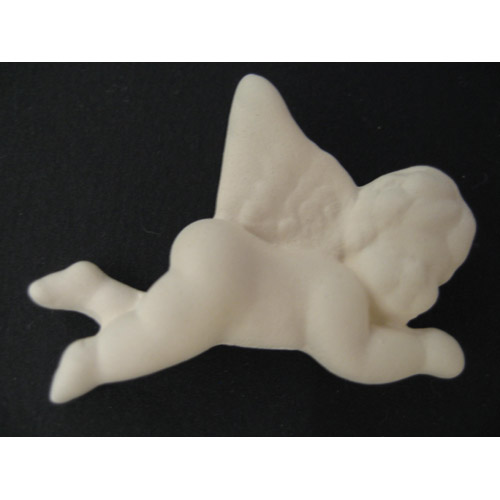 Réf. 14-087-1 ange, figurine, dos plat, L 5 x l 0,8 x h 3 ; biscuit de faïence fine (céramique brute à peindre ou à émailler)