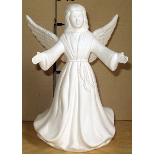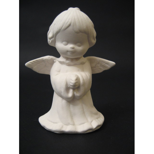 Réf. 14-086 ange debout, figurine, L 6 x l 6 x h 10 ; biscuit de faïence fine (céramique brute à peindre ou à émailler)