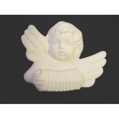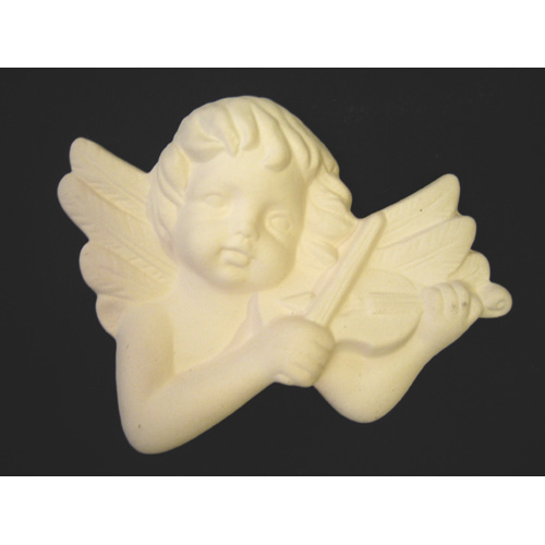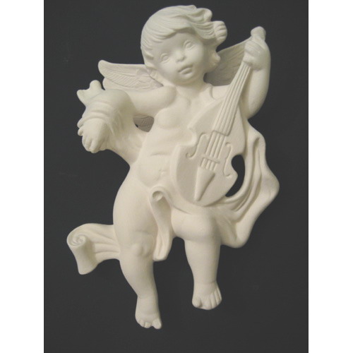 Réf. 14-092-1 ange avec violon, figurine murale, L 12,5 x l 5 x h 19 ; biscuit de faïence fine (céramique brute à peindre ou à émailler)