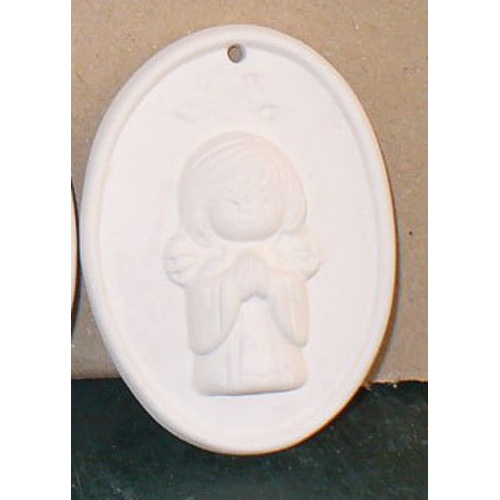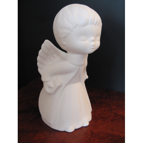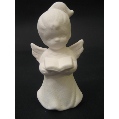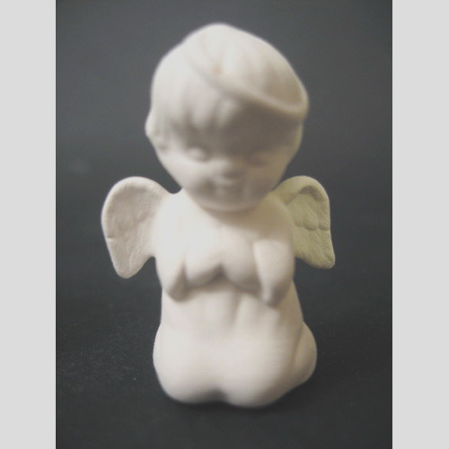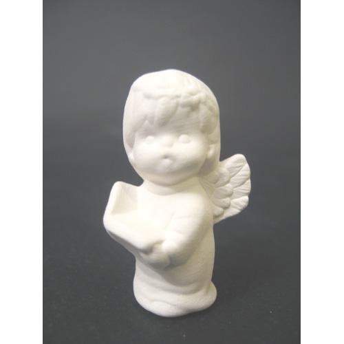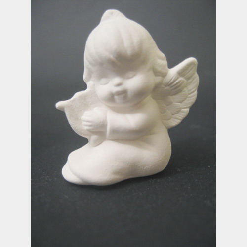 Réf. N°026 ange chantant, figurine, L 6 x l 5,5 x h 9 ; biscuit de faïence fine (céramique brute à peindre ou à émailler)