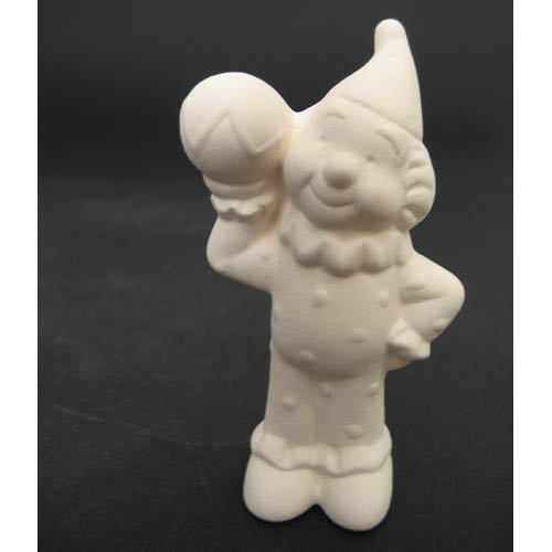 Réf. 16-127-1 clown debout, figurine, L 4 x l 2,5 x h 8 ; biscuit de faïence fine (céramique brute à peindre ou à émailler)