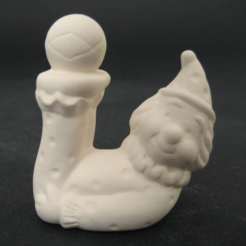 Réf. 16-127-3 clown sur le dos, figurine, L 5,5 x l 3,5 x h 6 ; biscuit de faïence fine (céramique brute à peindre ou à émailler)
