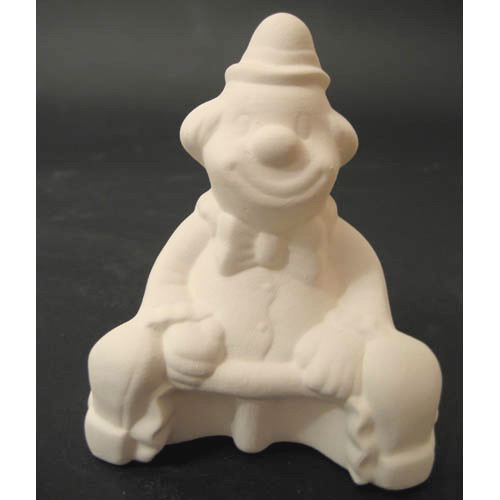 Réf. 16-148-1 clown avec chapeau melon, figurine, L 8,5 x l 6 x h 10 ; biscuit de faïence fine (céramique brute à peindre ou à émailler)