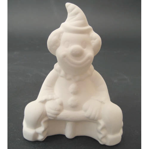 Réf. 16-148-2 clown avec bonnet, figurine, L 8,5 x l 6 x h 11 ; biscuit de faïence fine (céramique brute à peindre ou à émailler)