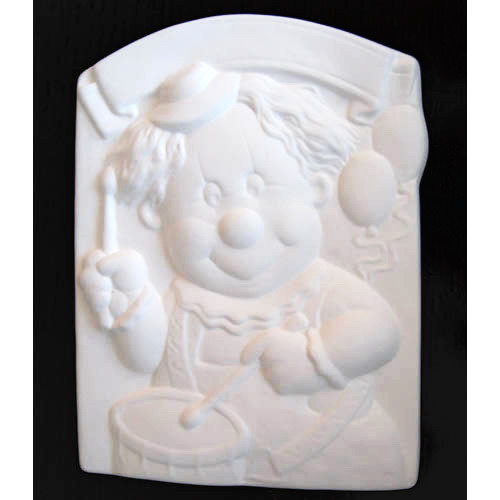 Réf. N°068 clown, sculpture murale, L 11 x l 2,5 x h 14,5 ; biscuit de faïence fine (céramique brute à peindre ou à émailler)