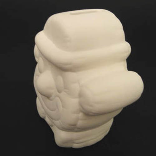 Réf. N°063-2 clown, tirelire sans bouchon, L 11,5 x l 7,5 x h 11 ; biscuit de faïence fine (céramique brute à peindre ou à émailler)