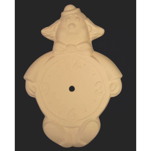 Réf. N°162 clown, cadran de pendule, L 15,5 x l 3 x h 23 ; biscuit de faïence fine (céramique brute à peindre ou à émailler)