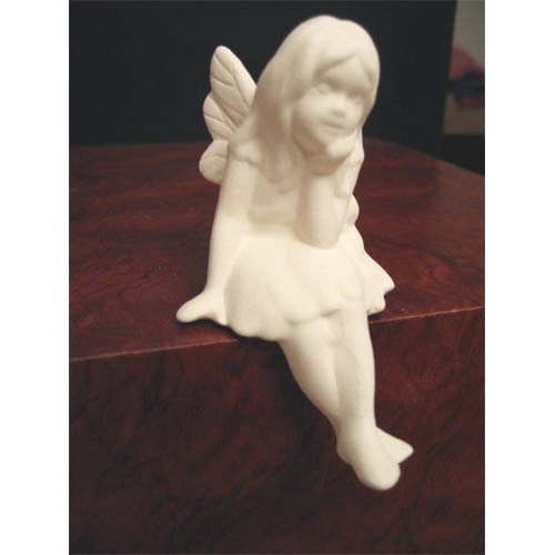 Réf. 10-049 elfe, figurine pour étagère, L 5,5 x l 7,5 x h 9,5 ; biscuit de faïence fine (céramique brute à peindre ou à émailler)